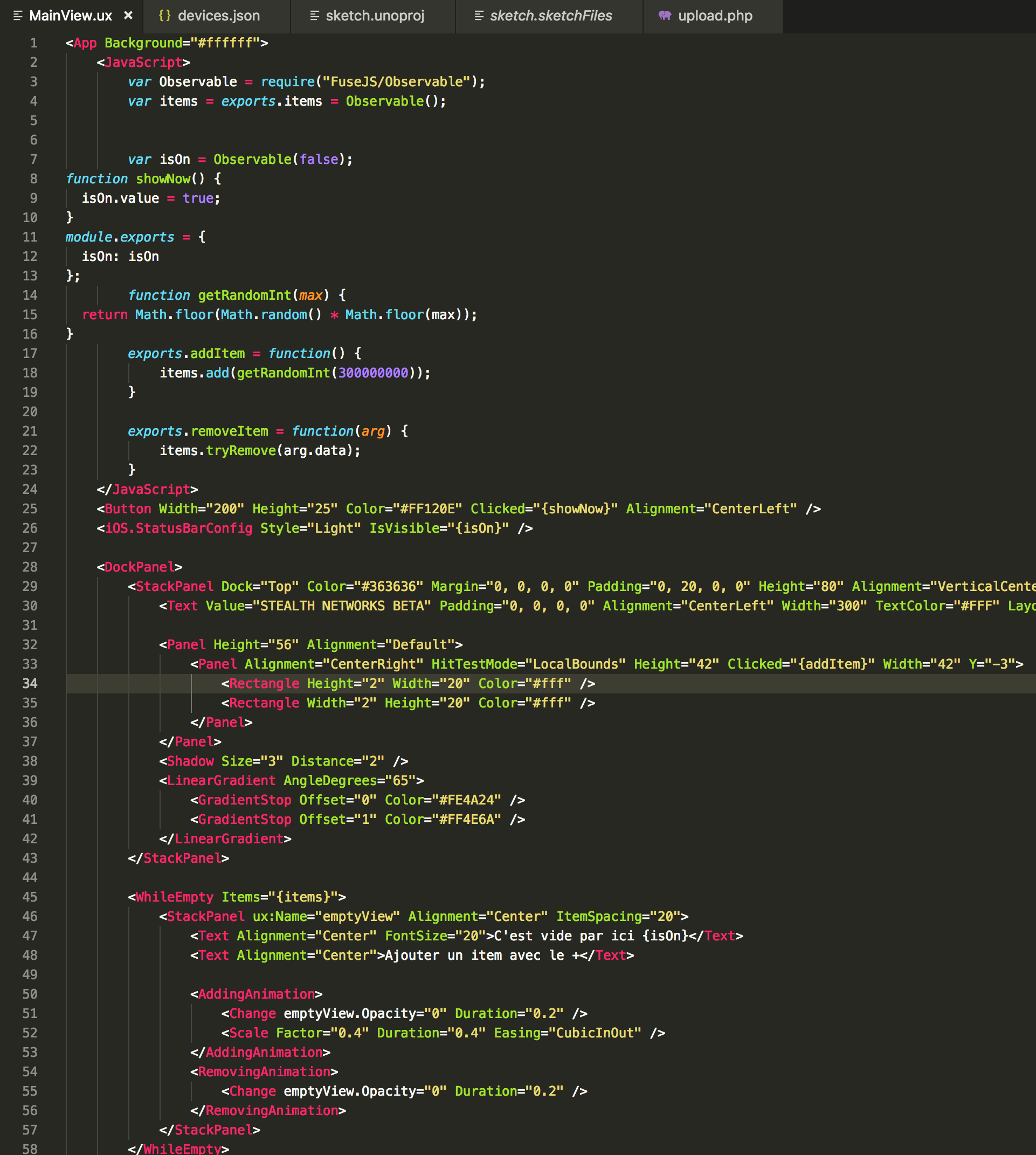Im trying to show status bar on var change, but i cant make it, i tried with isOn.value etc etc but without success