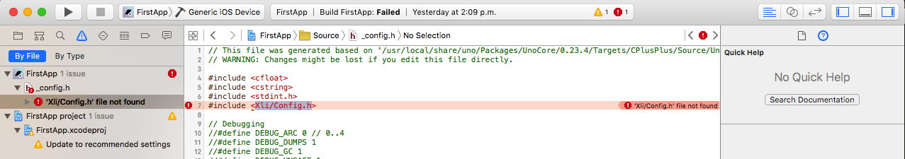 Anyone can please help me with the following error when I try to run the example on an iOS device